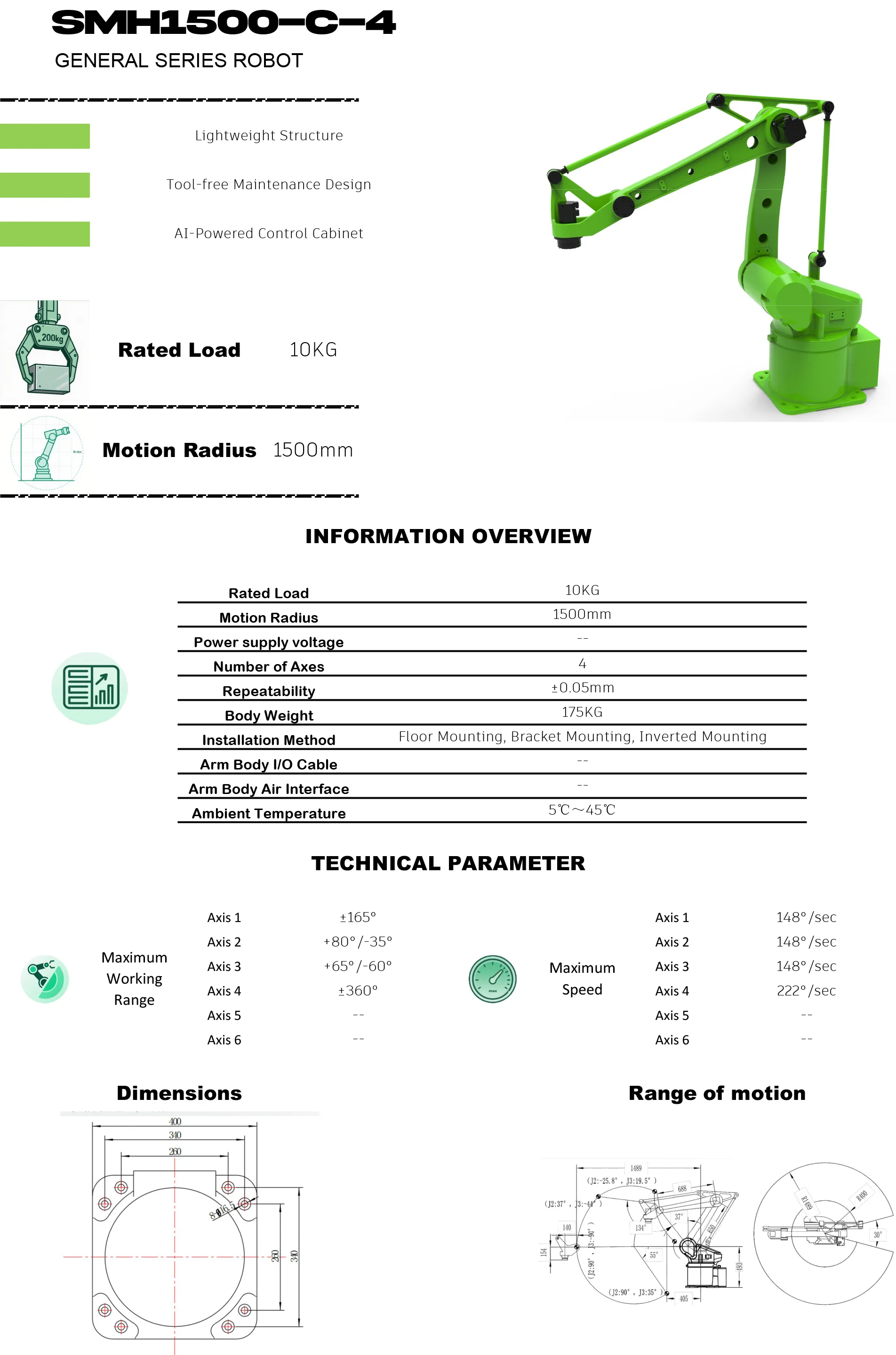Description: SMH1000-B-4 is a newly developed 6kg lightweight manipulator with a large range of motion.